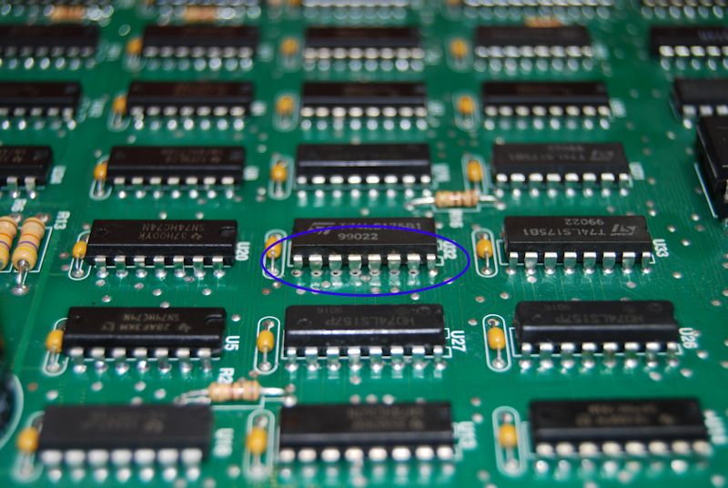 In Image 3 you can see the result of amateur repair work done on a Williams CPU. When I got the board, the switch matrix circuit would only work when I pressed down on the IC in question. Once I got the chip off I found the previous “repair person” had destroyed 7 pads/through-holes and four traces. Although pretty amazing, this is not at all uncommon.