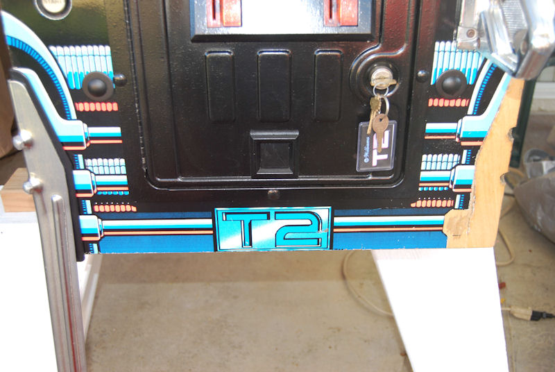 The game in question is a Terminator 2 and you can see the damage caused by a ravenous dog (that’s what I was told) in Image 2 (bottom right-hand corner of the cabinet).