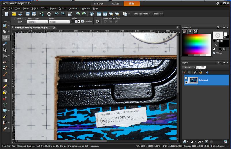 Remove the SDHC card and after moving the image to your computer, continue editing the image to create a decal or stencil (see references). Note: The print size will be set automatically. In Image 9 you can see a portion of the scan I did on the Dracula cabinet.