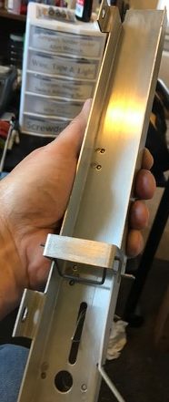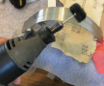 Metal guides clean up much the same way as metal ramps. Except that access with your Dremel will likely be much easier. We frequently use 220 grit sandpaper. Be sure to move the Dremel tool or sandpaper in the direction that the ball rolls – Not up and down.