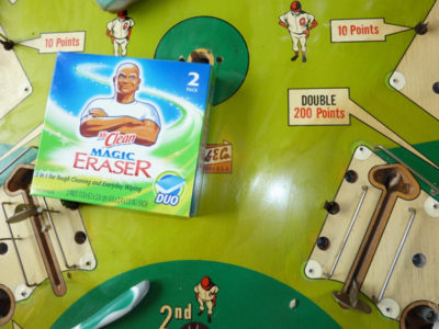 | Note: Only proceed with Magic Erasure if you are prepared to have to re-seal the playfield. Carefully read this link before you use Magic Erasure. |