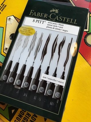 Many people use a Sharpie to ‘paint’ the missing black around an insert. Unfortunately, a Sharpie is not a true black, but really a very dark blue. To get a true black you need more of an artist pen. The Faber-Castell black pen set is perfect and comes in various pen thicknesses.