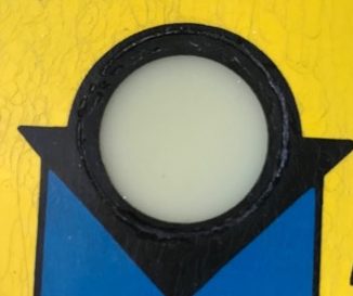 To check your work, pull out your phone or another source that has a bright light and shine it from underneath. You may have to remove the bulb and perhaps bend back the lamp socket. If it is in the wood area only, the repair will look perfect when lit. However, if the black in the insert requires repair, this pen may not be opaque enough to prevent the light from coming through. If that is the case, you may have no alternative to use black paint and carefully brush in the circle of black. Close up, it does not look perfect. But while playing, through the playfield glass, the wear is imperceptible.