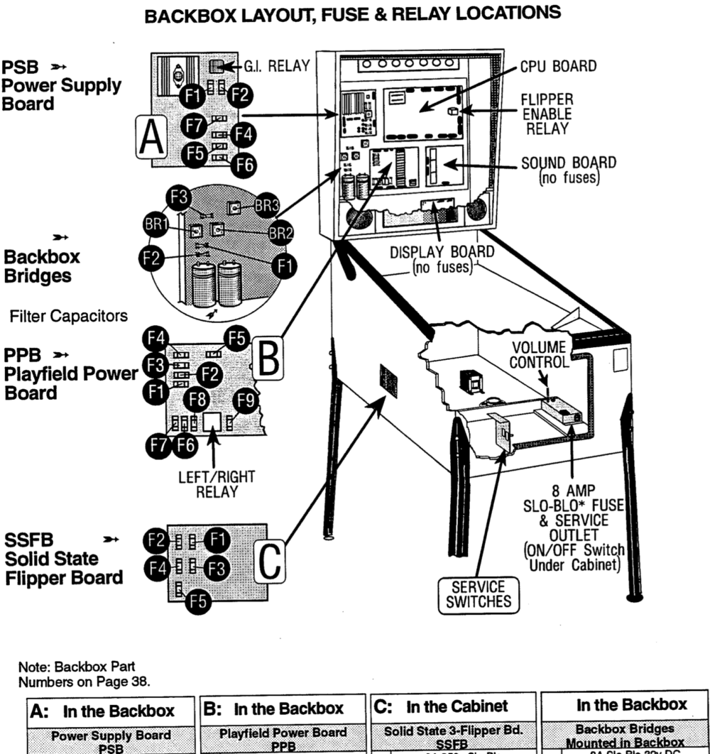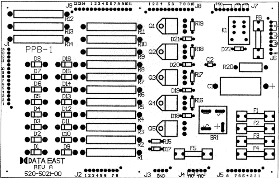 The PBB supply serves several functions, from providing fuses for the GI lamps, switching between solenoids and flashers, high power drivers for certain solenoids and a relay to turn on and off solenoids.