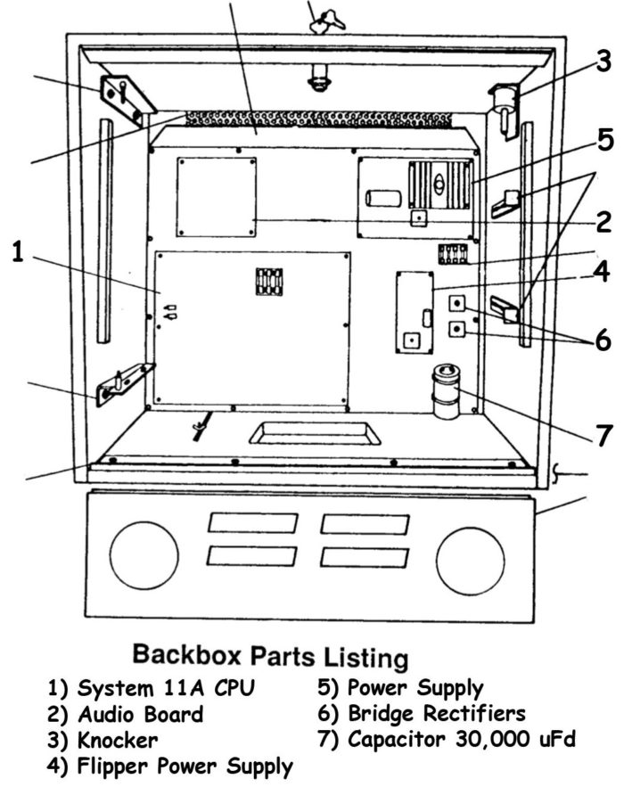 There are distinctive differences between the systems that complicate troubleshooting. System 11 consists of four boards: CPU, power supply, flipper power, and a ‘background’ sound board – but the CPU houses the main sound components. 11A moves the sound amplification from the CPU board and has a full external sound board. The last system 11A pin (Big Guns) added an Aux Power Supply. Some 11B and 11C have an interconnect board as well as the Aux Power Supply board. There are other significant differences between the systems that will not be covered here.